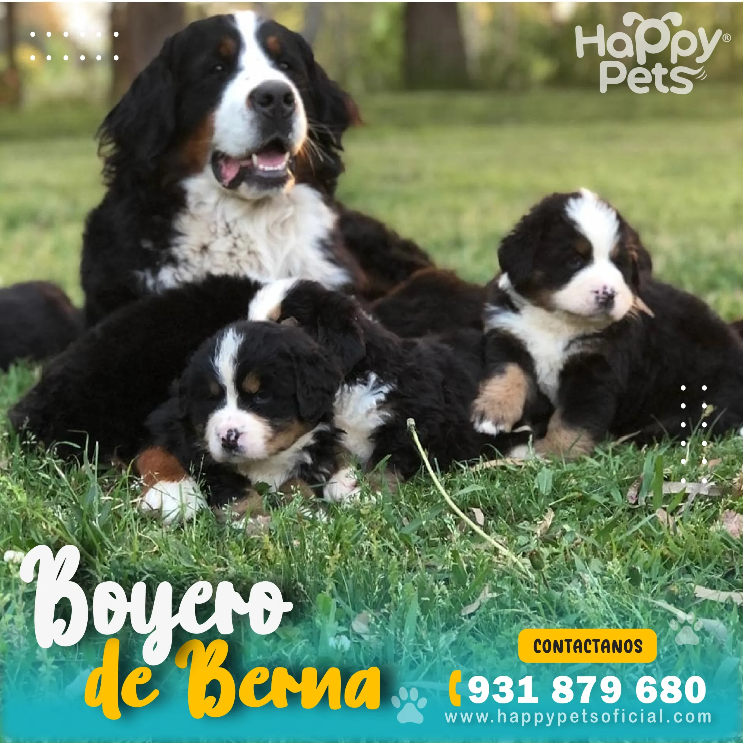 ¿Buscas un perro grande, noble y excelente con la familia? En Happy Pets Oficial te ofrecemos cachorros de boyero de Berna en venta en Lima, criados con amor, salud garantizada y listos para convertirse en tu mejor compañía.